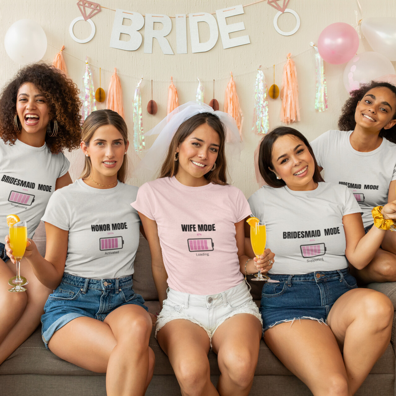 Create coordinated bridal party outfits with a polished, modern look that feels elevated yet playful. The “Mode” concept adds a subtle, confident statement while keeping the design clean and timeless.