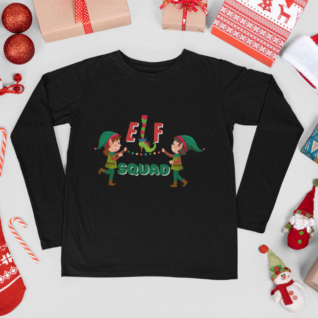 This fun and festive design is perfect for family Christmas outfits or “Elf Squad” group shirts. It adds playful holiday cheer to your custom apparel or party gifts!